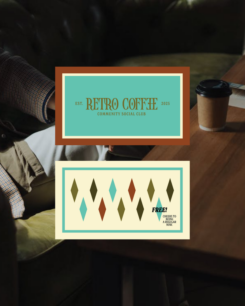 Retro Coffee is more than a café -- it’s the neighborhood’s living room. A social club without the velvet rope, where conversations linger longer than the lattes. We took their brand beyond the cup, weaving it into the walls, textures, and atmosphere of the space itself -- so the community doesn’t just sip the brand, they live inside it.